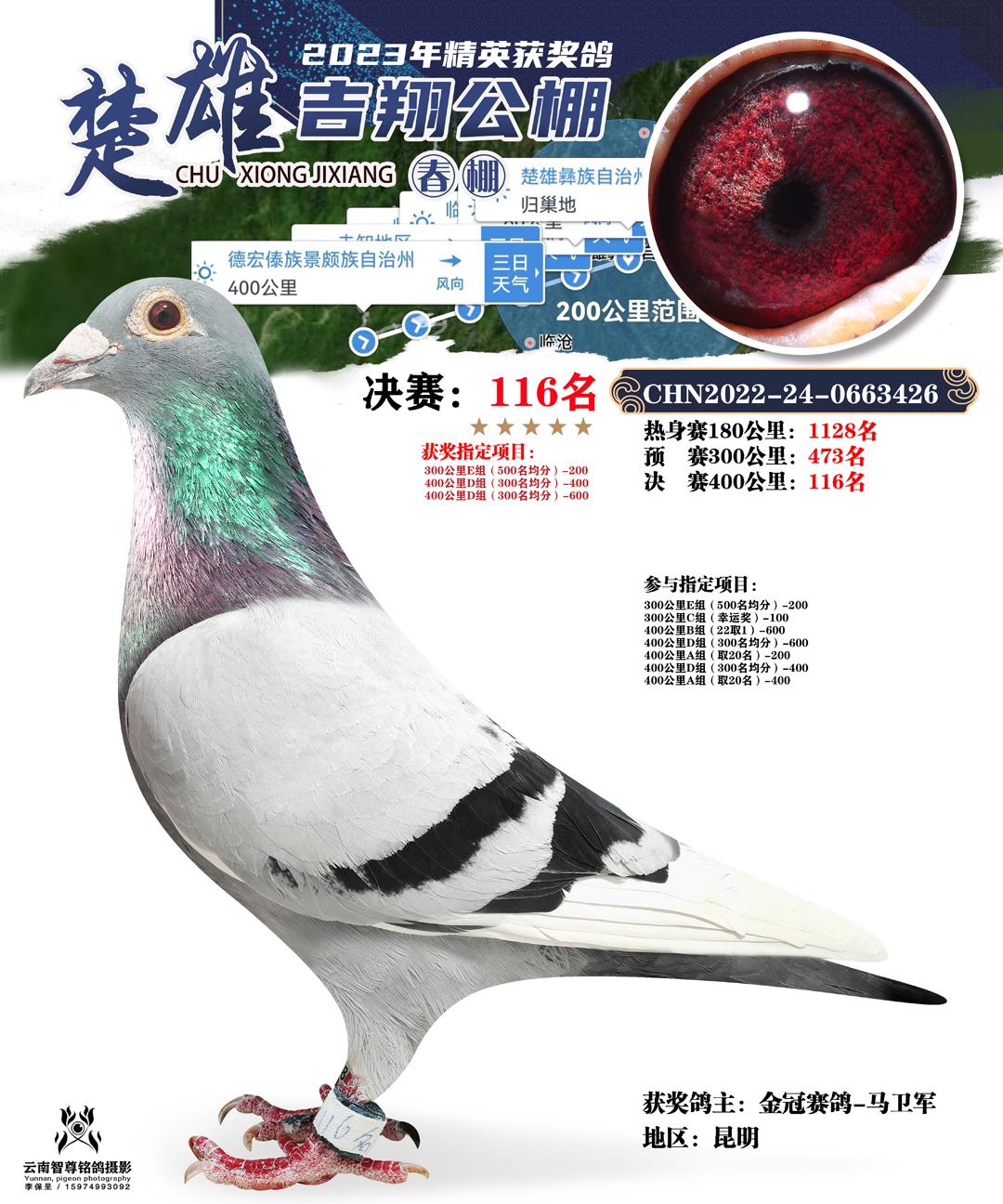 云南楚雄吉翔养殖有限公司(春棚) 2023年(第二届)400公里决赛获奖鸽