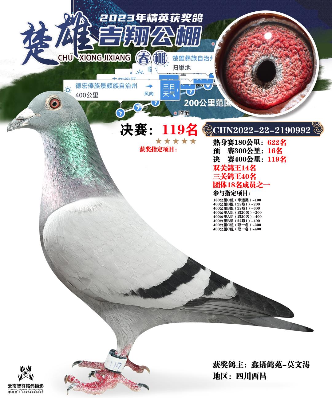 云南楚雄吉翔养殖有限公司(春棚) 2023年(第二届)400公里决赛获奖鸽
