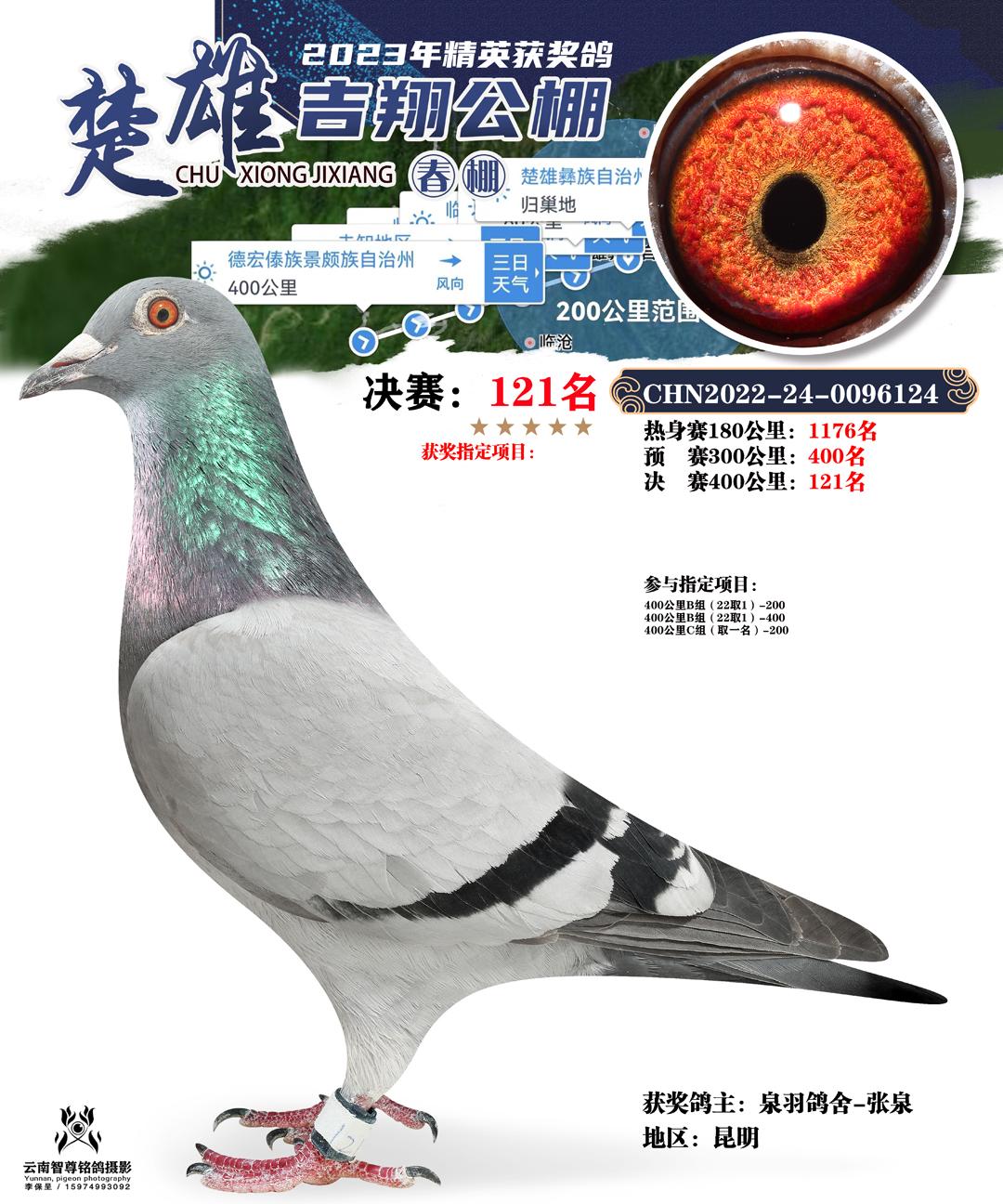 云南楚雄吉翔养殖有限公司(春棚) 2023年(第二届)400公里决赛获奖鸽