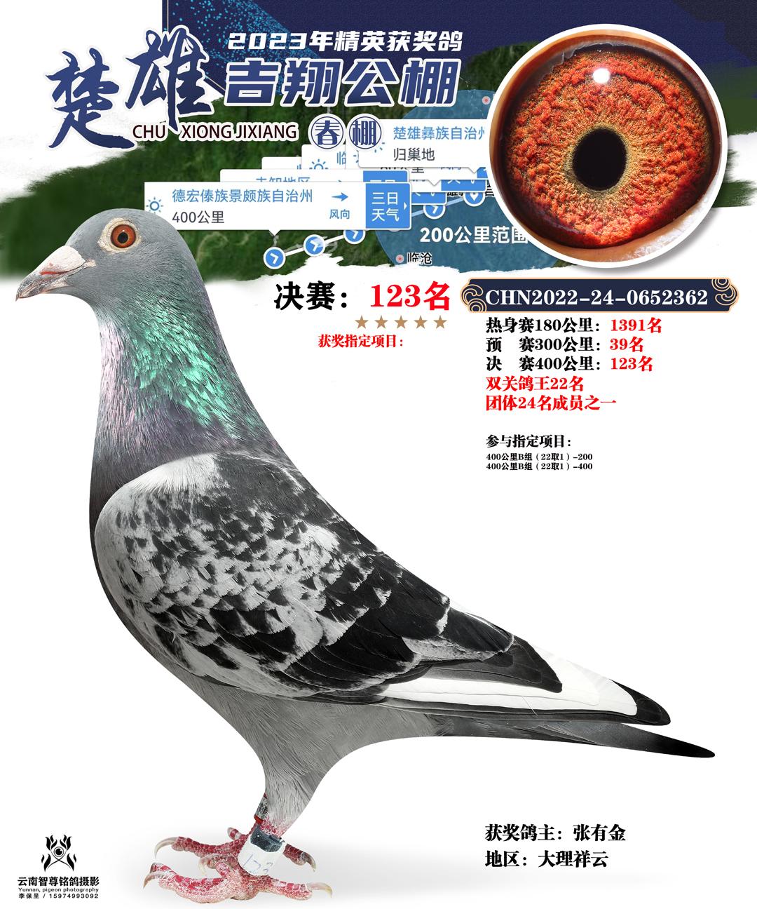 云南楚雄吉翔养殖有限公司(春棚) 2023年(第二届)400公里决赛获奖鸽