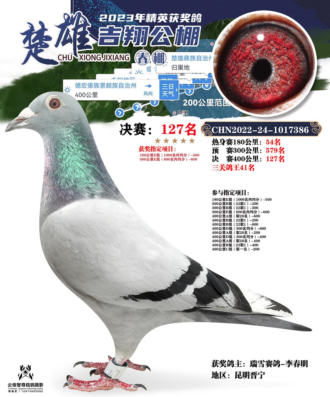 | 鸽主姓名 | 瑞雪赛鸽-李春明 |