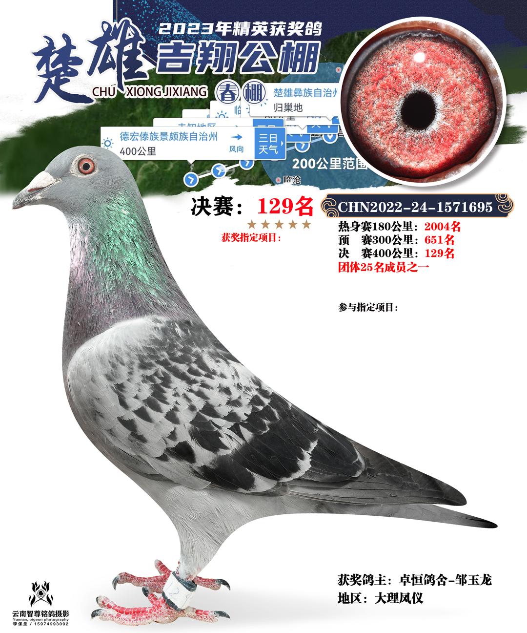 云南楚雄吉翔养殖有限公司(春棚) 2023年(第二届)400公里决赛获奖鸽