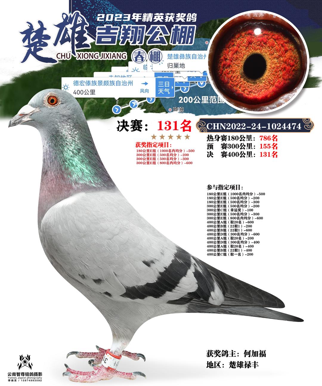 云南楚雄吉翔养殖有限公司(春棚) 2023年(第二届)400公里决赛获奖鸽