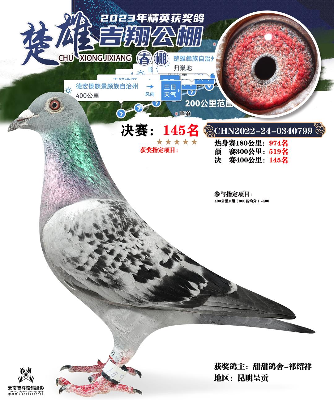 云南楚雄吉翔养殖有限公司(春棚) 2023年(第二届)400公里决赛获奖鸽