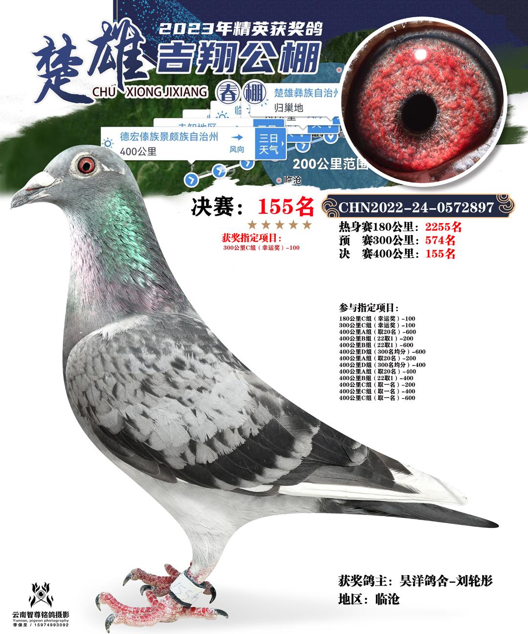 云南楚雄吉翔养殖有限公司(春棚) 2023年(第二届)400公里决赛获奖鸽