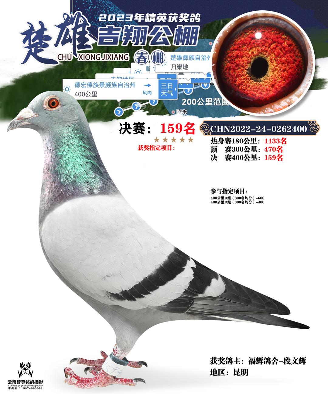 云南楚雄吉翔养殖有限公司(春棚) 2023年(第二届)400公里决赛获奖鸽