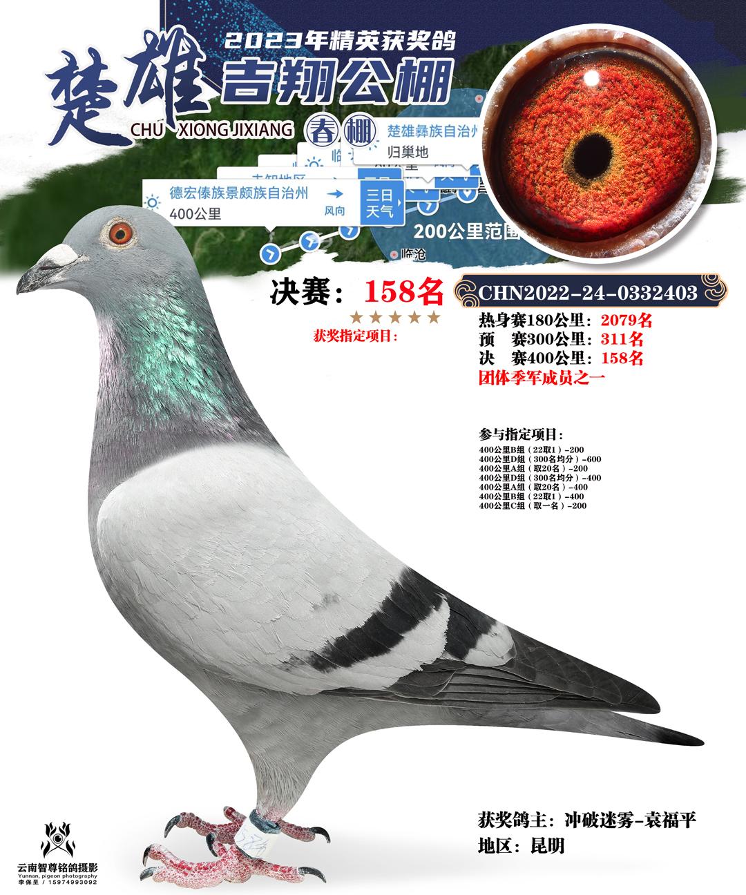 云南楚雄吉翔养殖有限公司(春棚) 2023年(第二届)400公里决赛获奖鸽