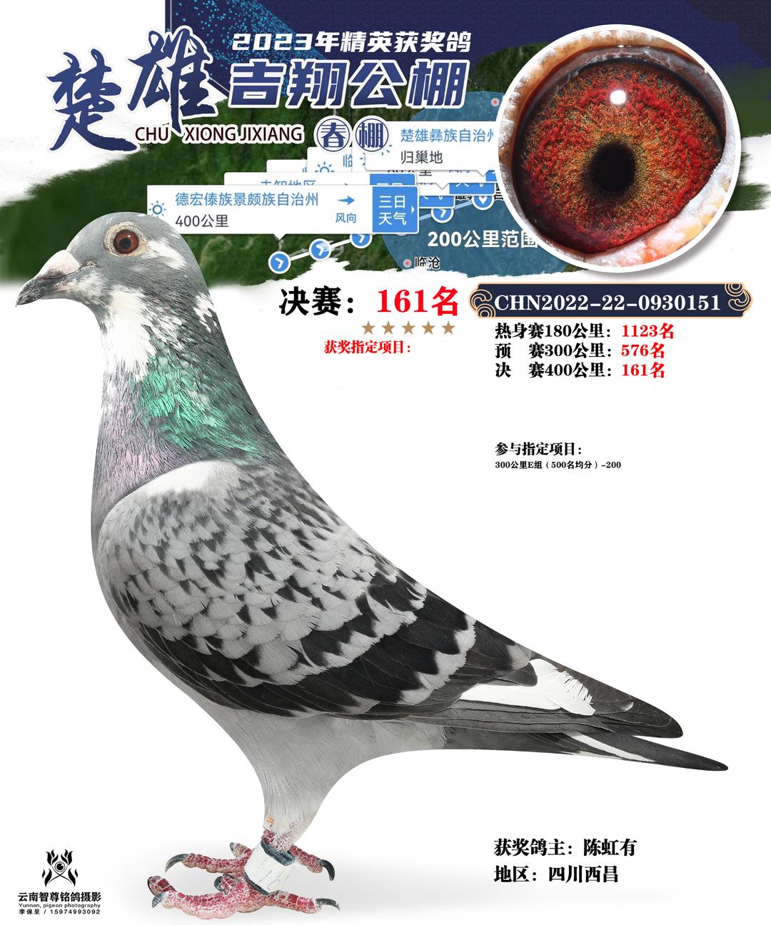 云南楚雄吉翔养殖有限公司(春棚) 2023年(第二届)400公里决赛获奖鸽