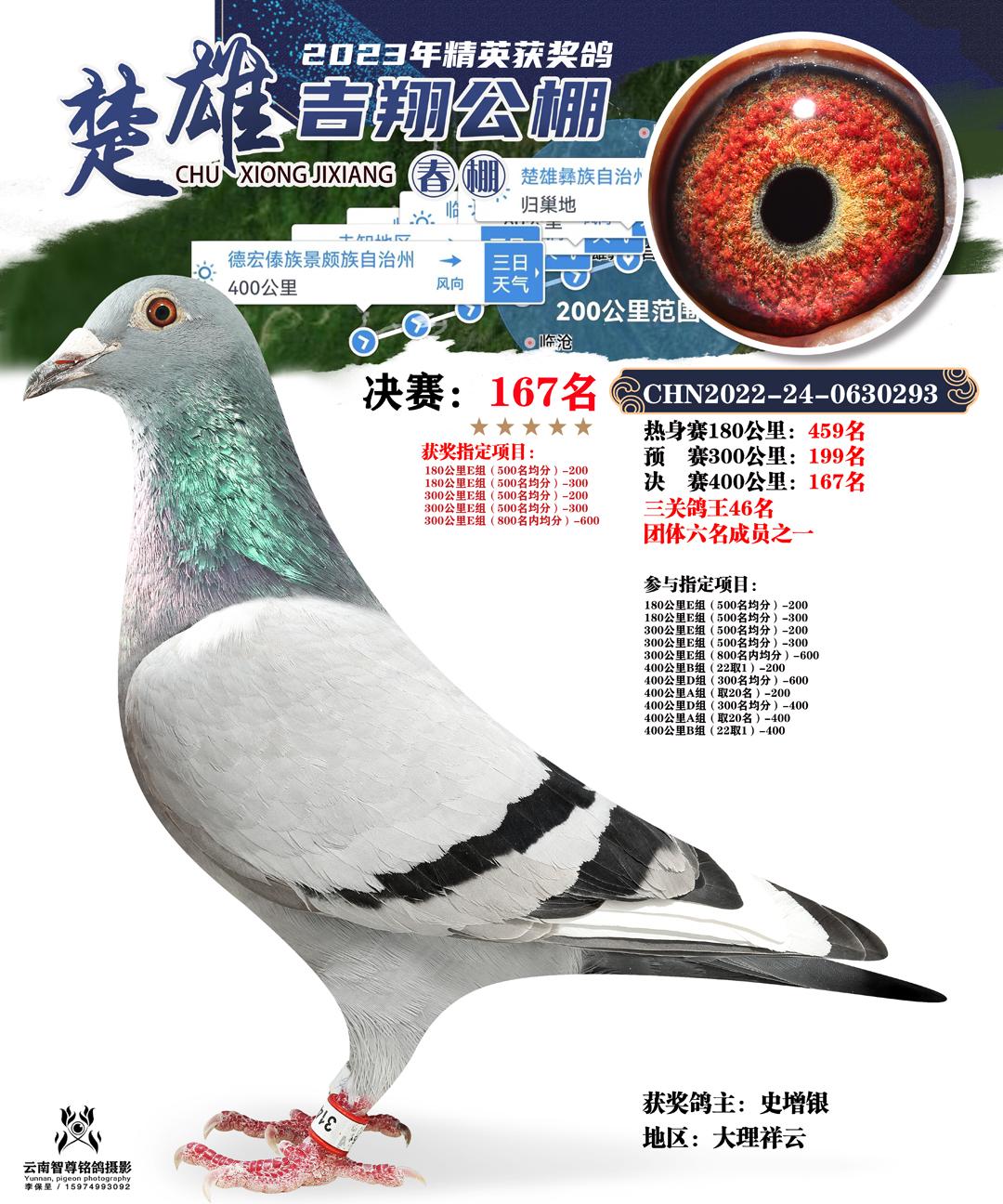 云南楚雄吉翔养殖有限公司(春棚) 2023年(第二届)400公里决赛获奖鸽