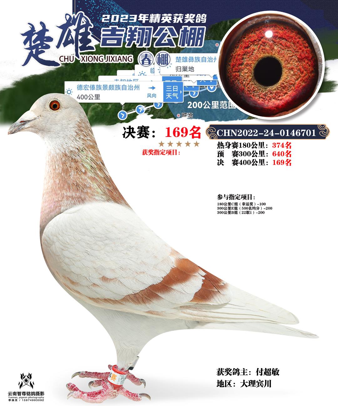 云南楚雄吉翔养殖有限公司(春棚) 2023年(第二届)400公里决赛获奖鸽
