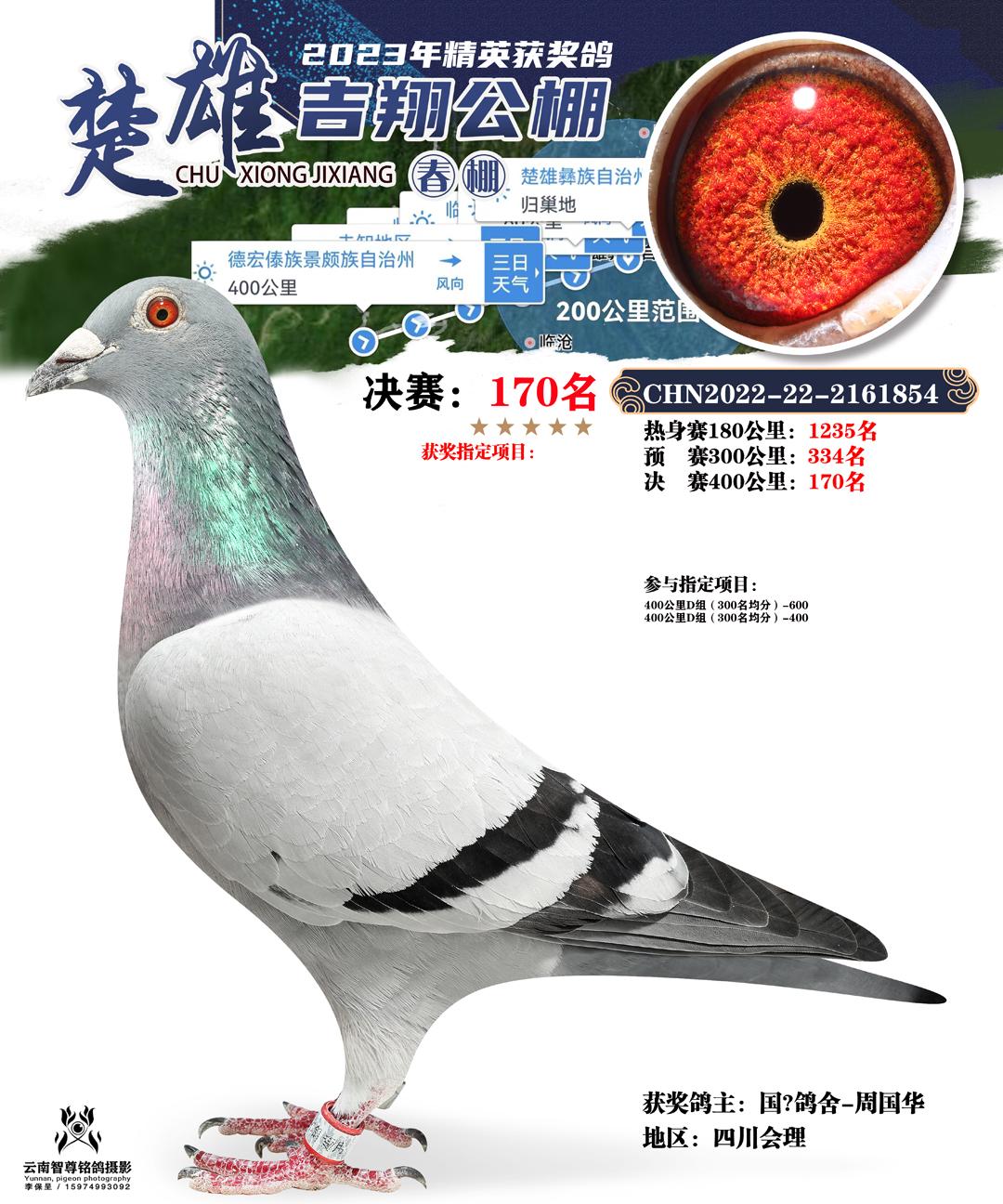 云南楚雄吉翔养殖有限公司(春棚) 2023年(第二届)400公里决赛获奖鸽