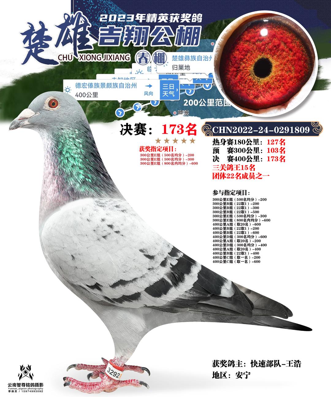 云南楚雄吉翔养殖有限公司(春棚) 2023年(第二届)400公里决赛获奖鸽