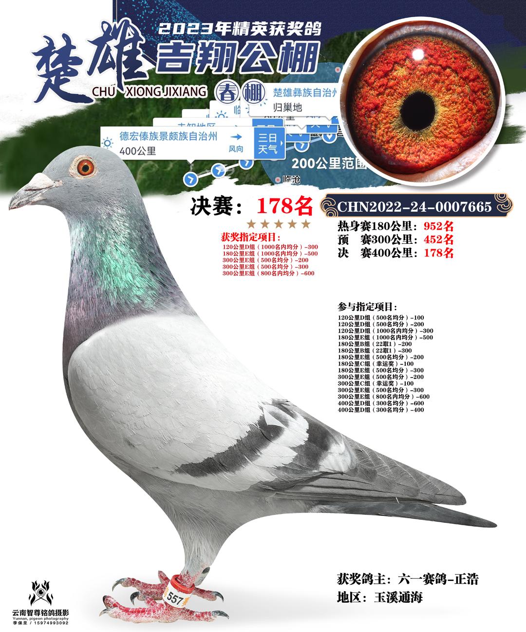 云南楚雄吉翔养殖有限公司(春棚) 2023年(第二届)400公里决赛获奖鸽