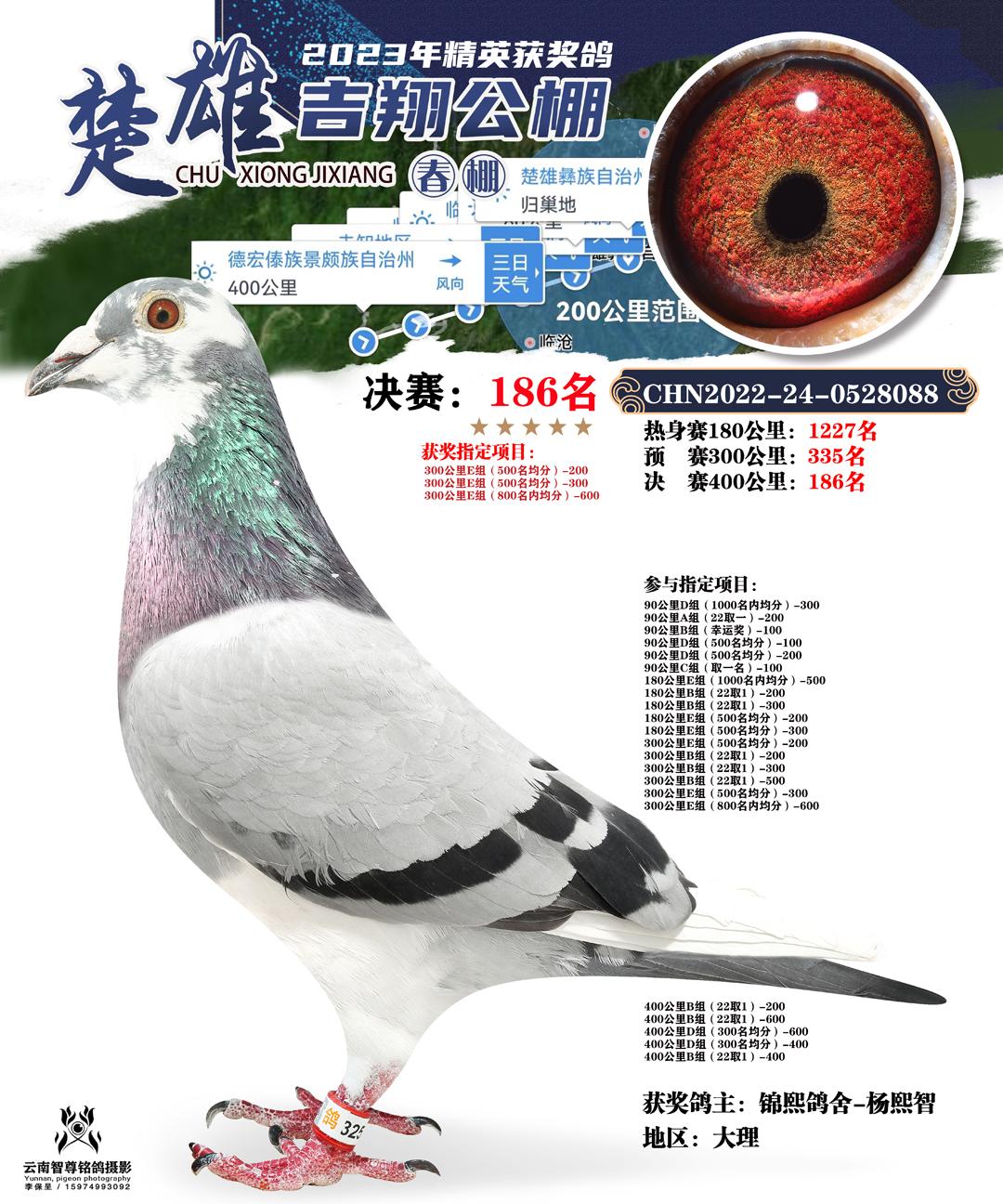 云南楚雄吉翔养殖有限公司(春棚) 2023年(第二届)400公里决赛获奖鸽