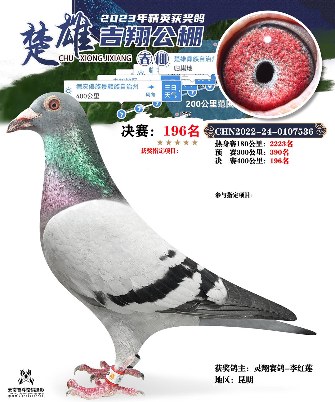 云南楚雄吉翔养殖有限公司(春棚) 2023年(第二届)400公里决赛获奖鸽