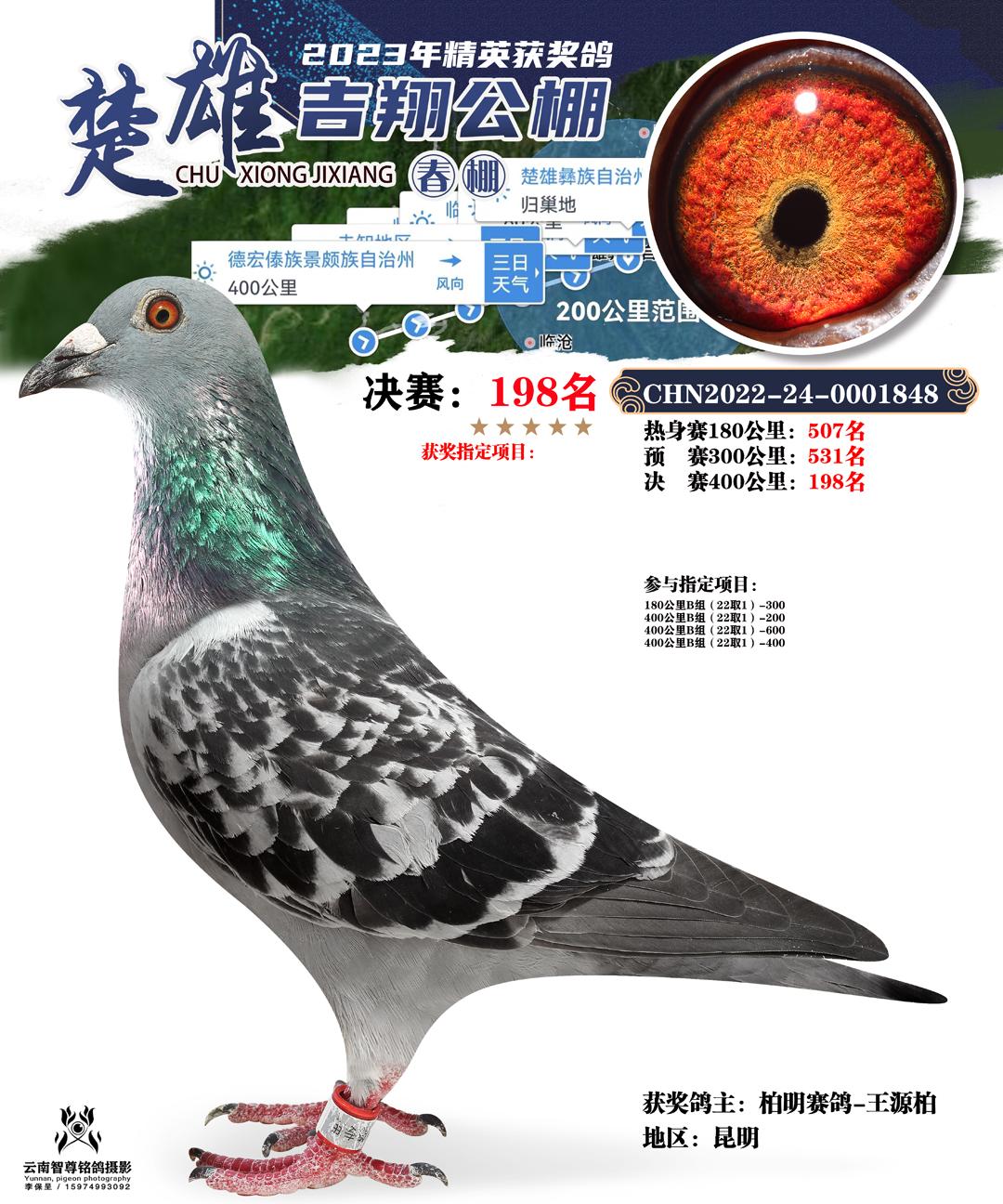 云南楚雄吉翔养殖有限公司(春棚) 2023年(第二届)400公里决赛获奖鸽