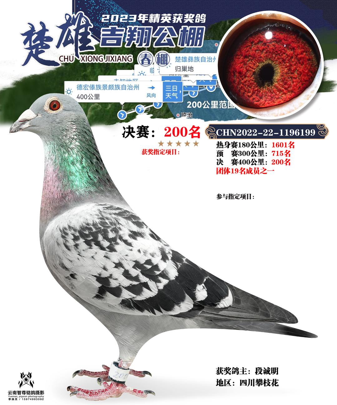 云南楚雄吉翔养殖有限公司(春棚) 2023年(第二届)400公里决赛获奖鸽