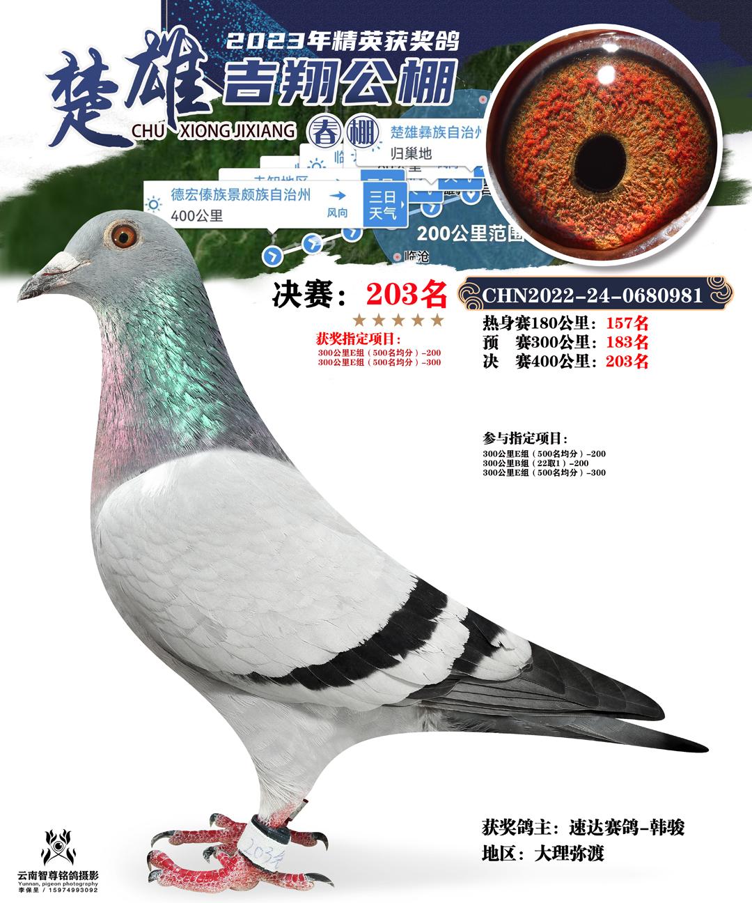 云南楚雄吉翔养殖有限公司(春棚) 2023年(第二届)400公里决赛获奖鸽