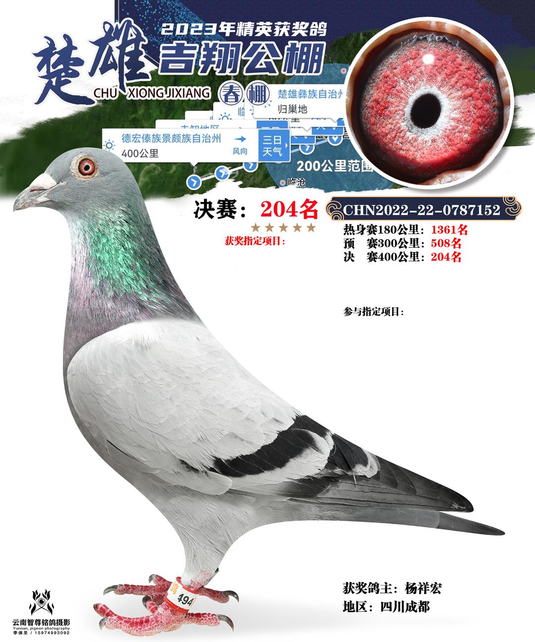 云南楚雄吉翔养殖有限公司(春棚) 2023年(第二届)400公里决赛获奖鸽
