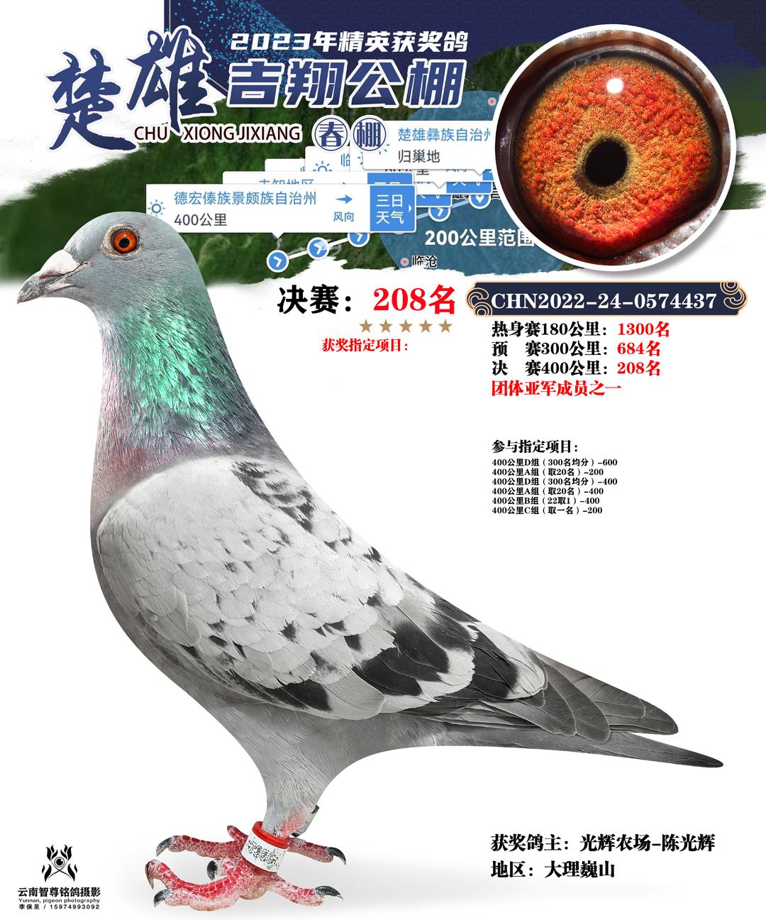 云南楚雄吉翔养殖有限公司(春棚) 2023年(第二届)400公里决赛获奖鸽
