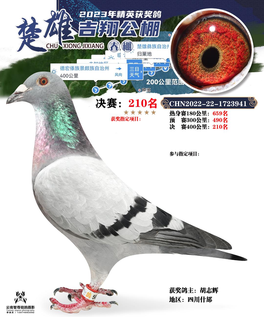 云南楚雄吉翔养殖有限公司(春棚) 2023年(第二届)400公里决赛获奖鸽