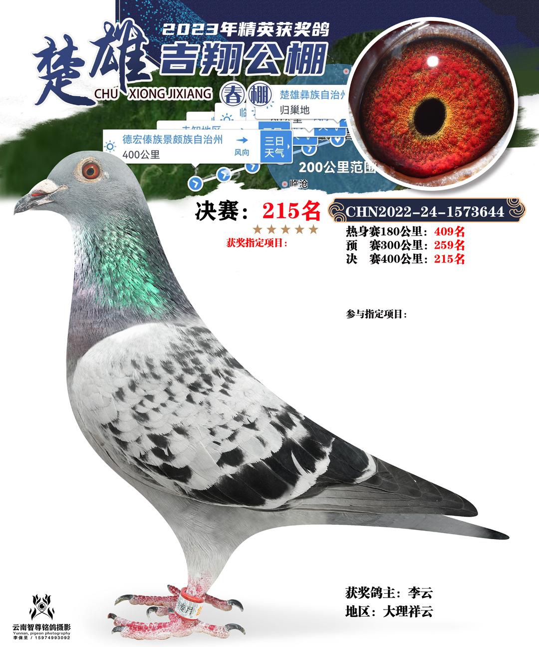 云南楚雄吉翔养殖有限公司(春棚) 2023年(第二届)400公里决赛获奖鸽
