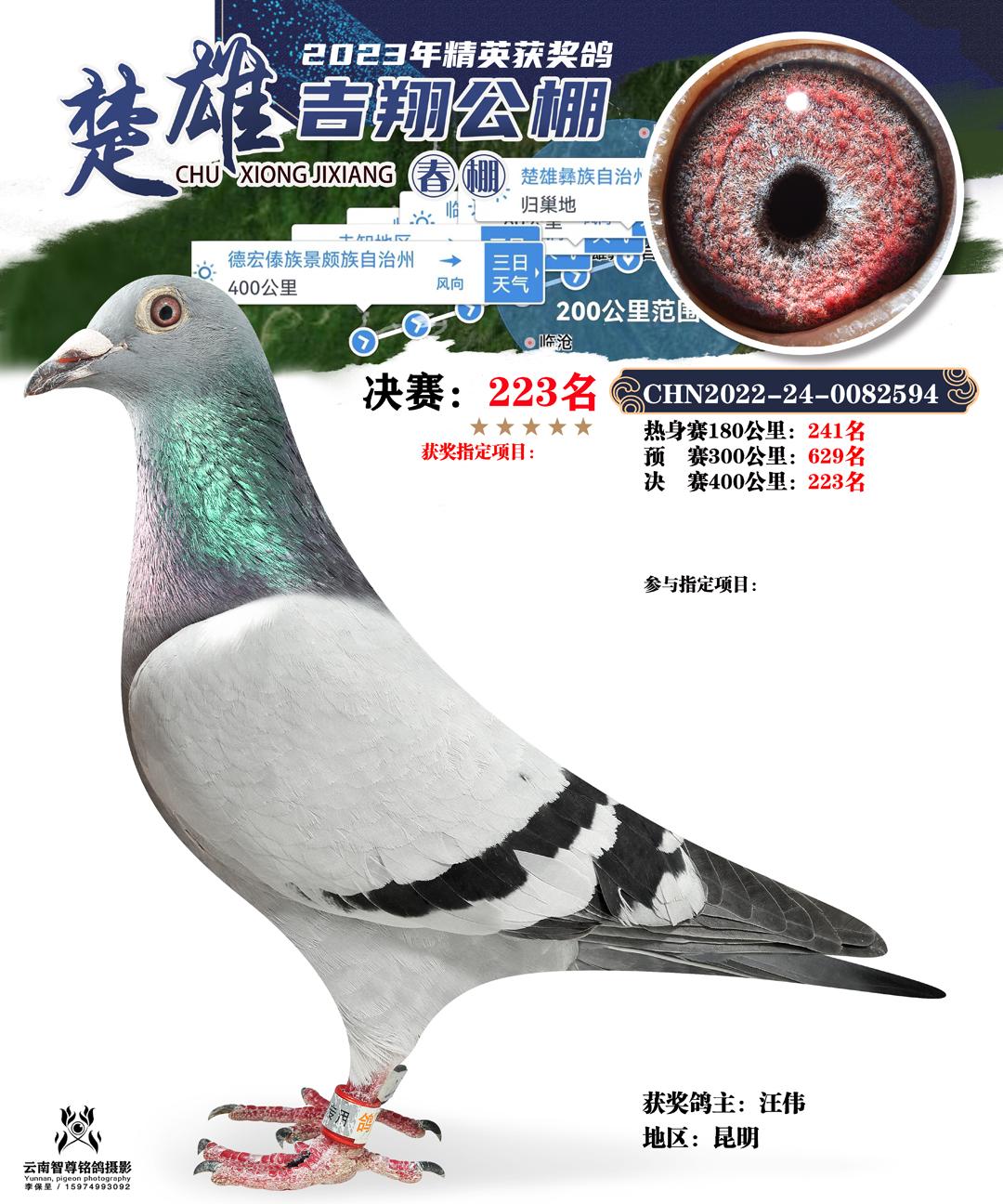 云南楚雄吉翔养殖有限公司(春棚) 2023年(第二届)400公里决赛获奖鸽