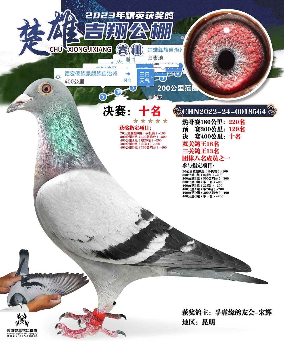 云南楚雄吉翔养殖有限公司(春棚) 2023年(第二届)400公里决赛获奖鸽
