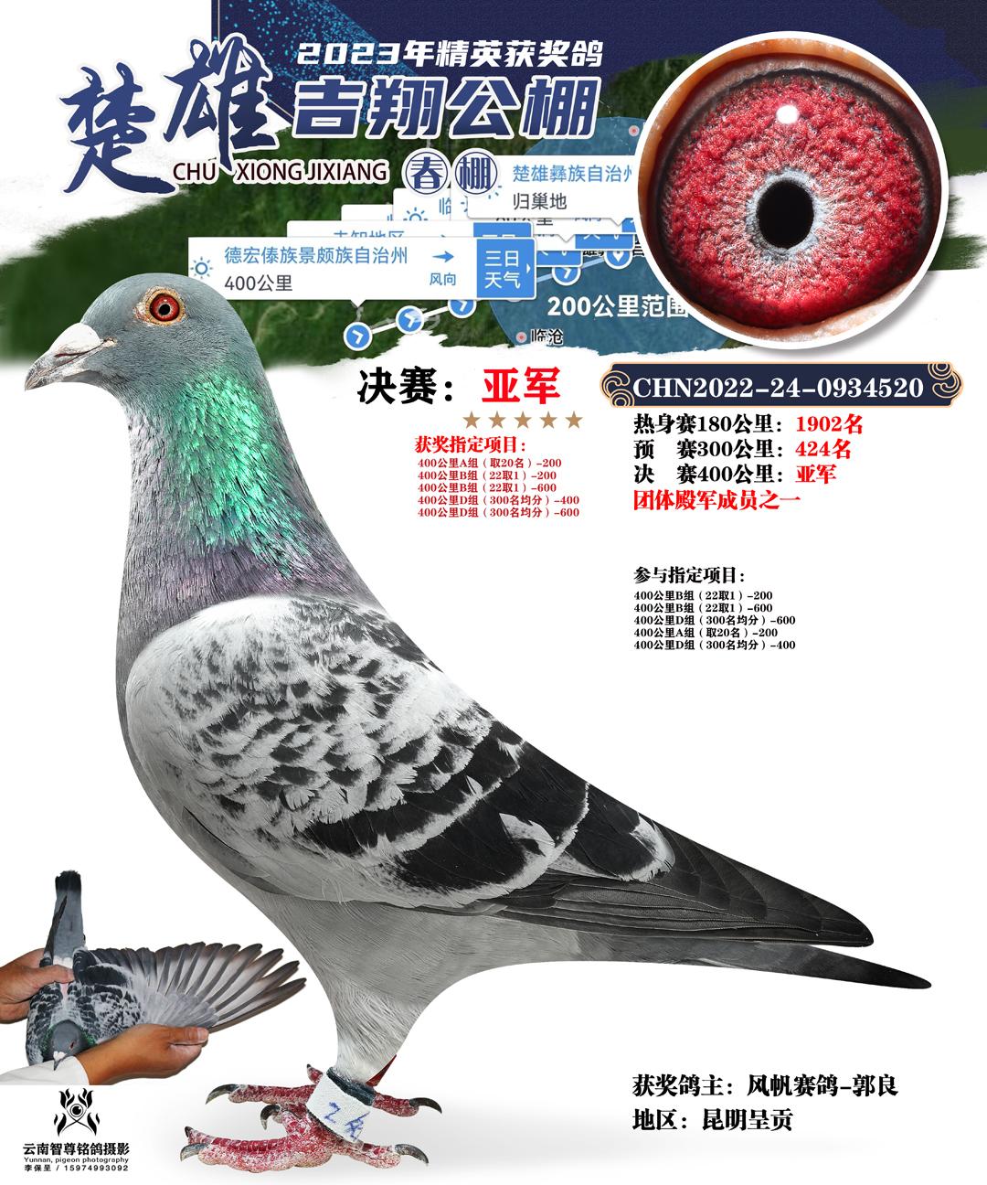 云南楚雄吉翔养殖有限公司(春棚) 2023年(第二届)400公里决赛获奖鸽