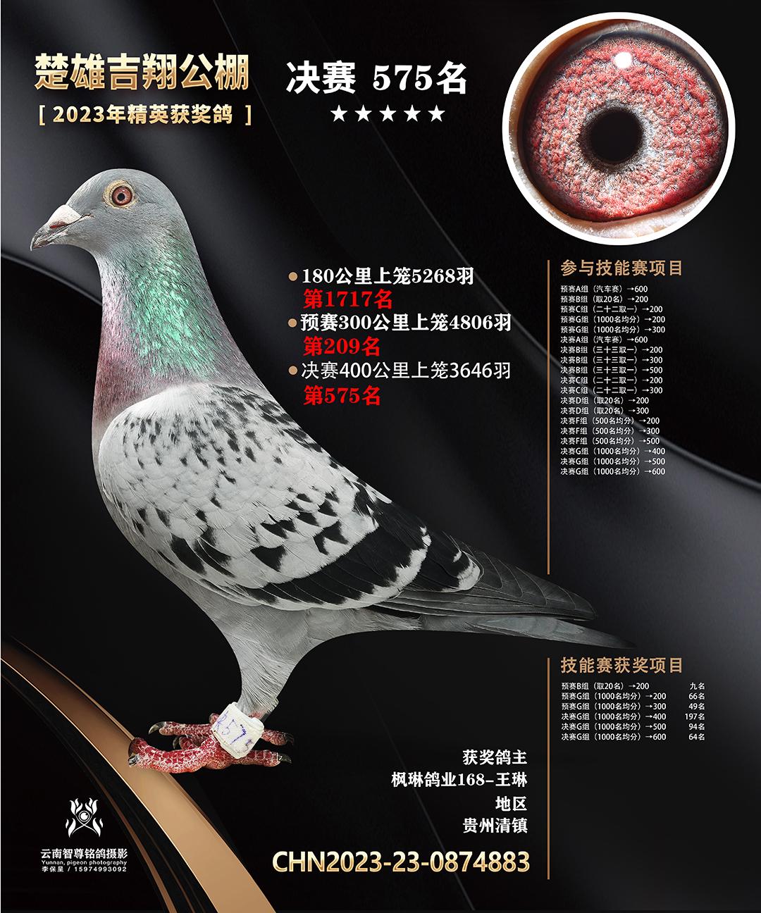 楚雄吉翔养殖有限公司(秋棚)2023年精英获奖鸽