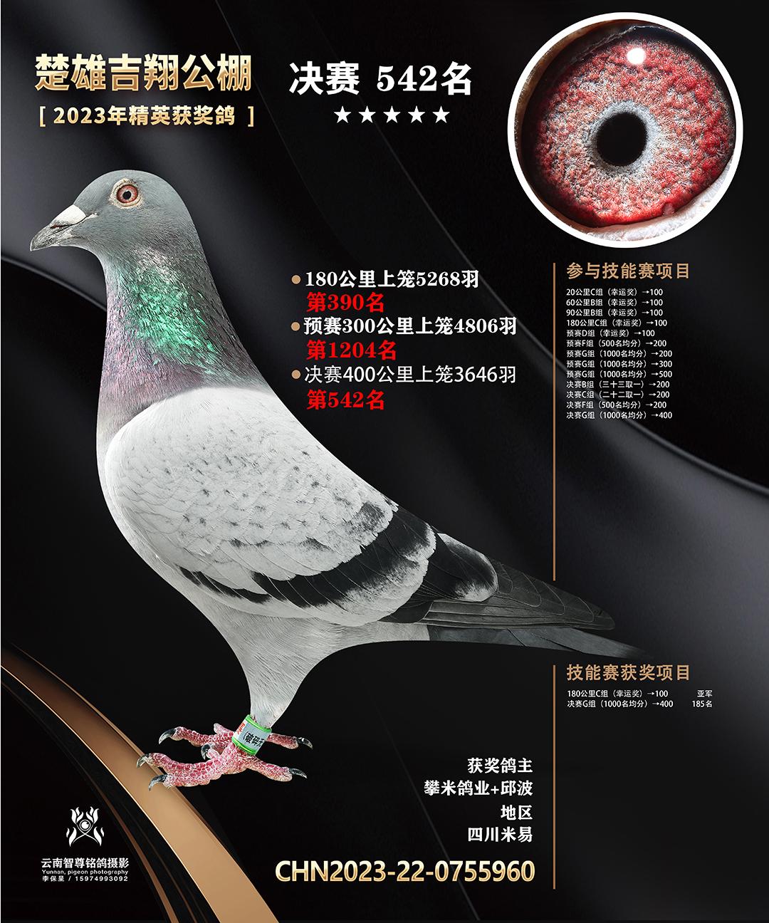 楚雄吉翔养殖有限公司(秋棚)2023年精英获奖鸽
