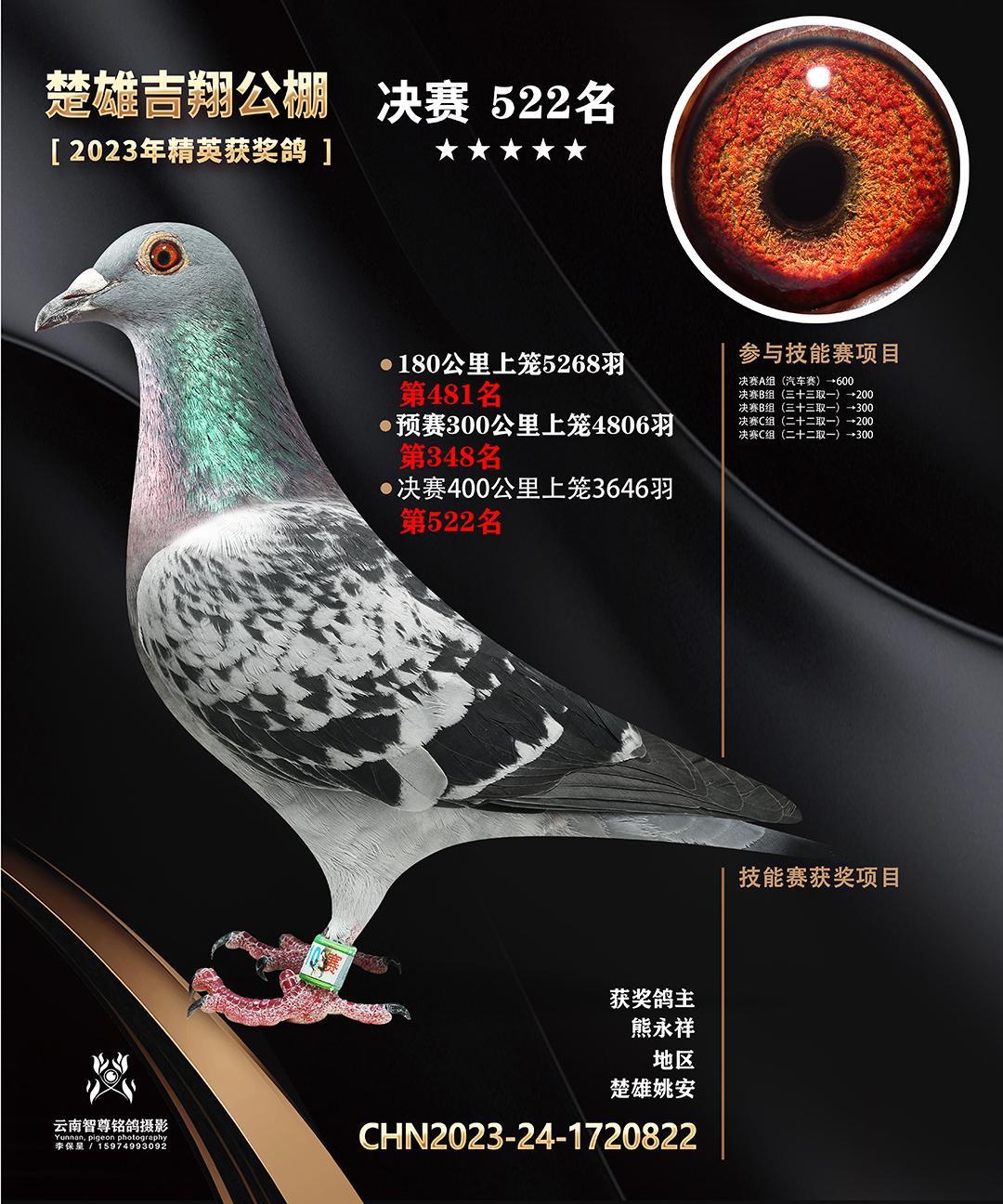 楚雄吉翔养殖有限公司(秋棚)2023年精英获奖鸽