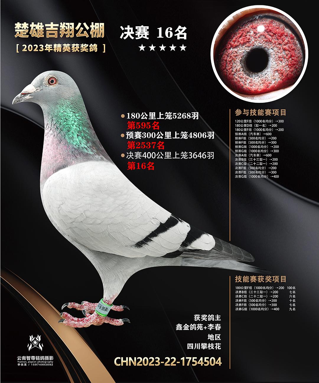 楚雄吉翔养殖有限公司(秋棚)2023年精英获奖鸽