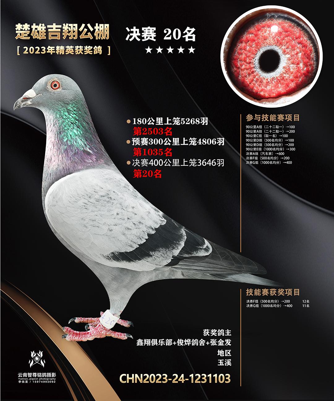 楚雄吉翔养殖有限公司(秋棚)2023年精英获奖鸽