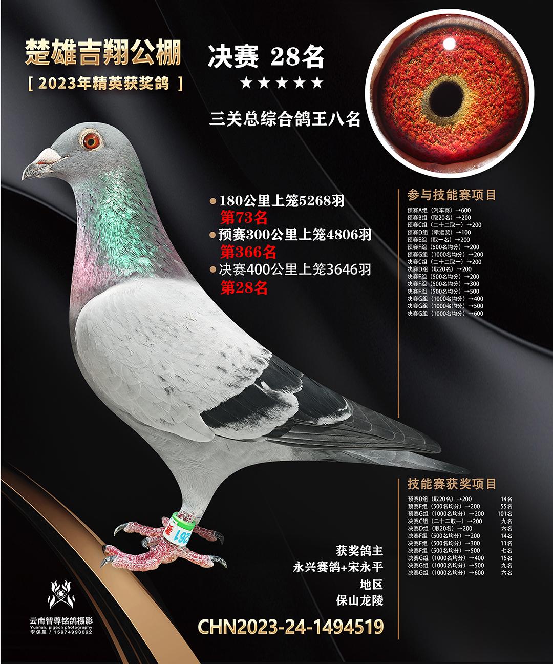 楚雄吉翔养殖有限公司(秋棚)2023年精英获奖鸽