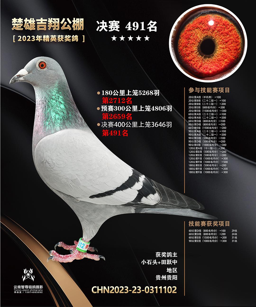 楚雄吉翔养殖有限公司(秋棚)2023年精英获奖鸽