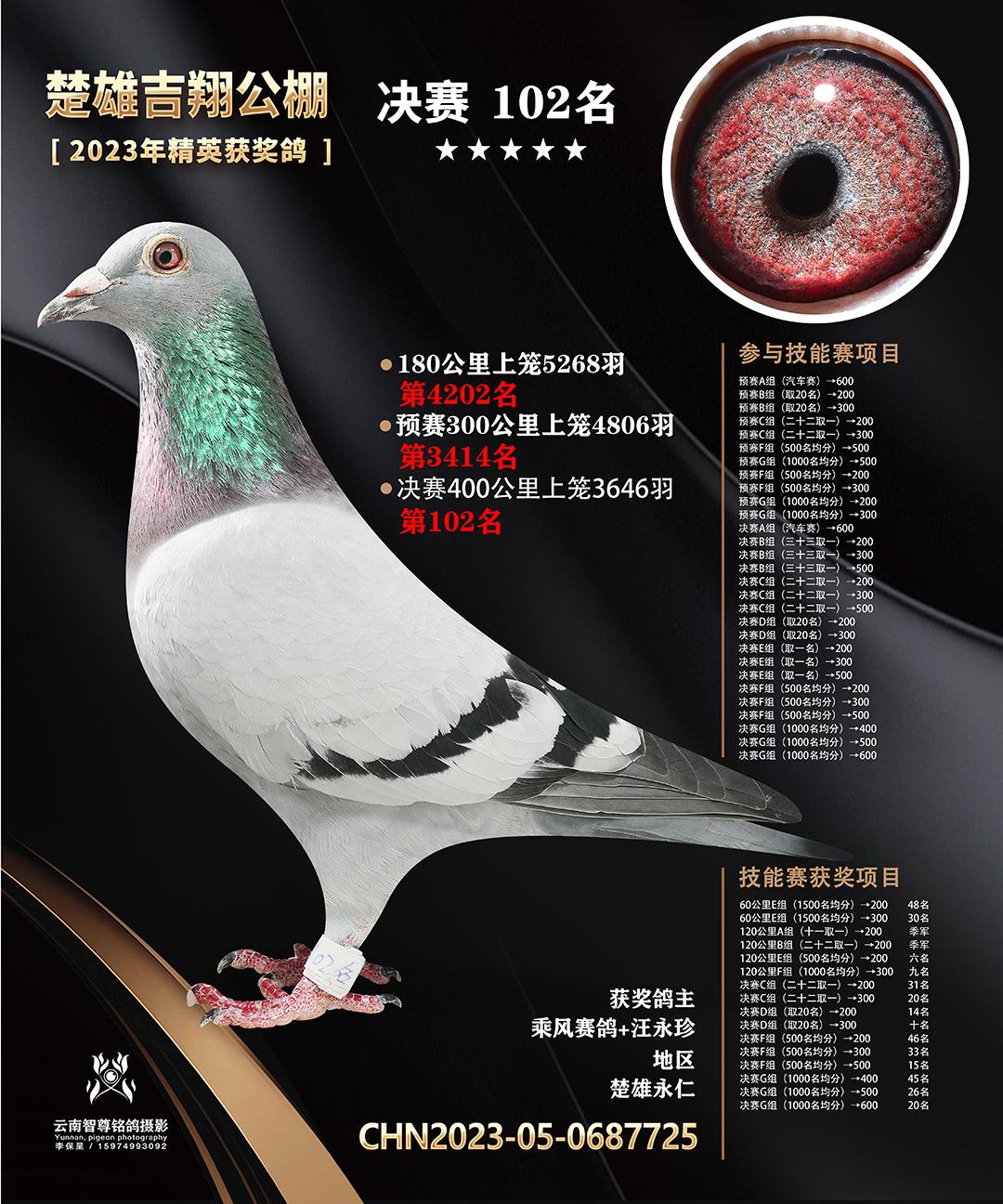 楚雄吉翔养殖有限公司(秋棚)2023年精英获奖鸽