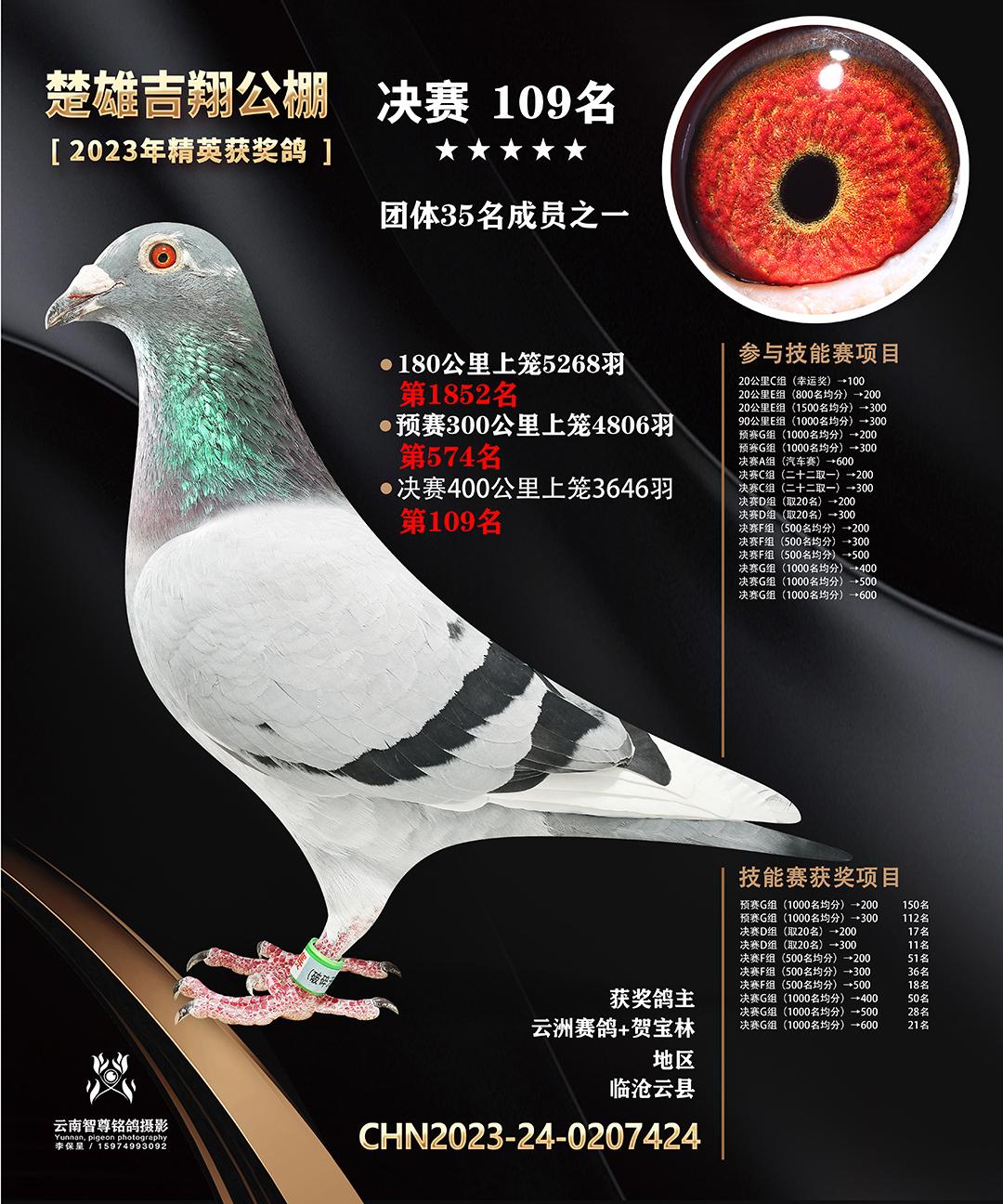 楚雄吉翔养殖有限公司(秋棚)2023年精英获奖鸽