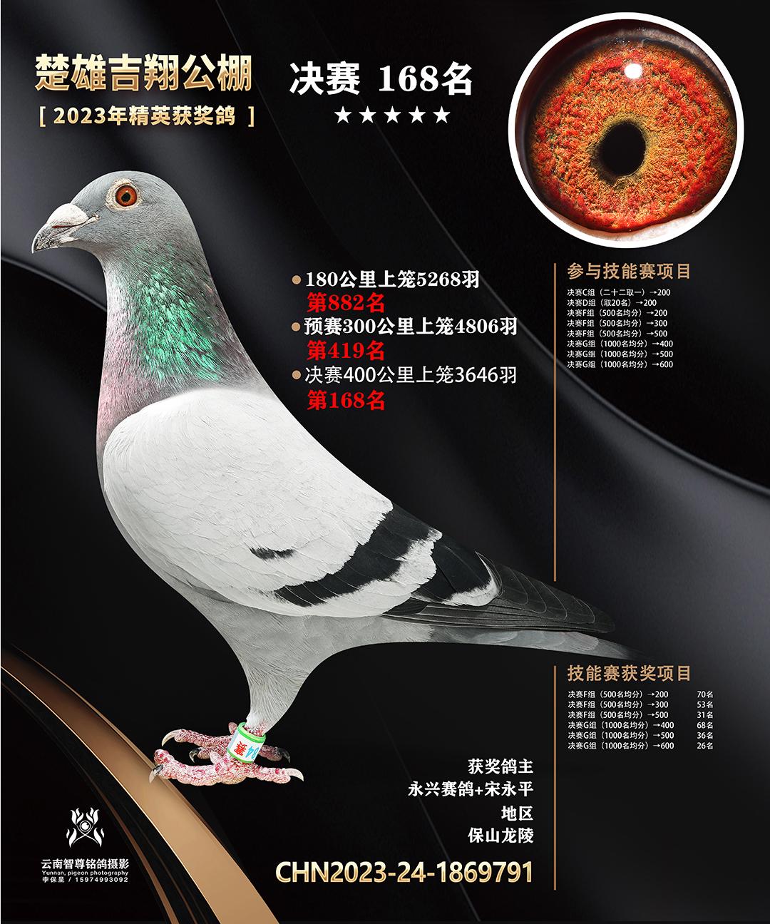 楚雄吉翔养殖有限公司(秋棚)2023年精英获奖鸽