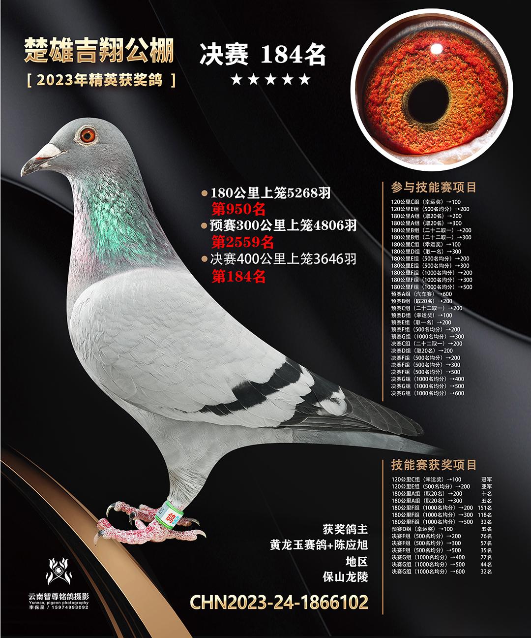 楚雄吉翔养殖有限公司(秋棚)2023年精英获奖鸽