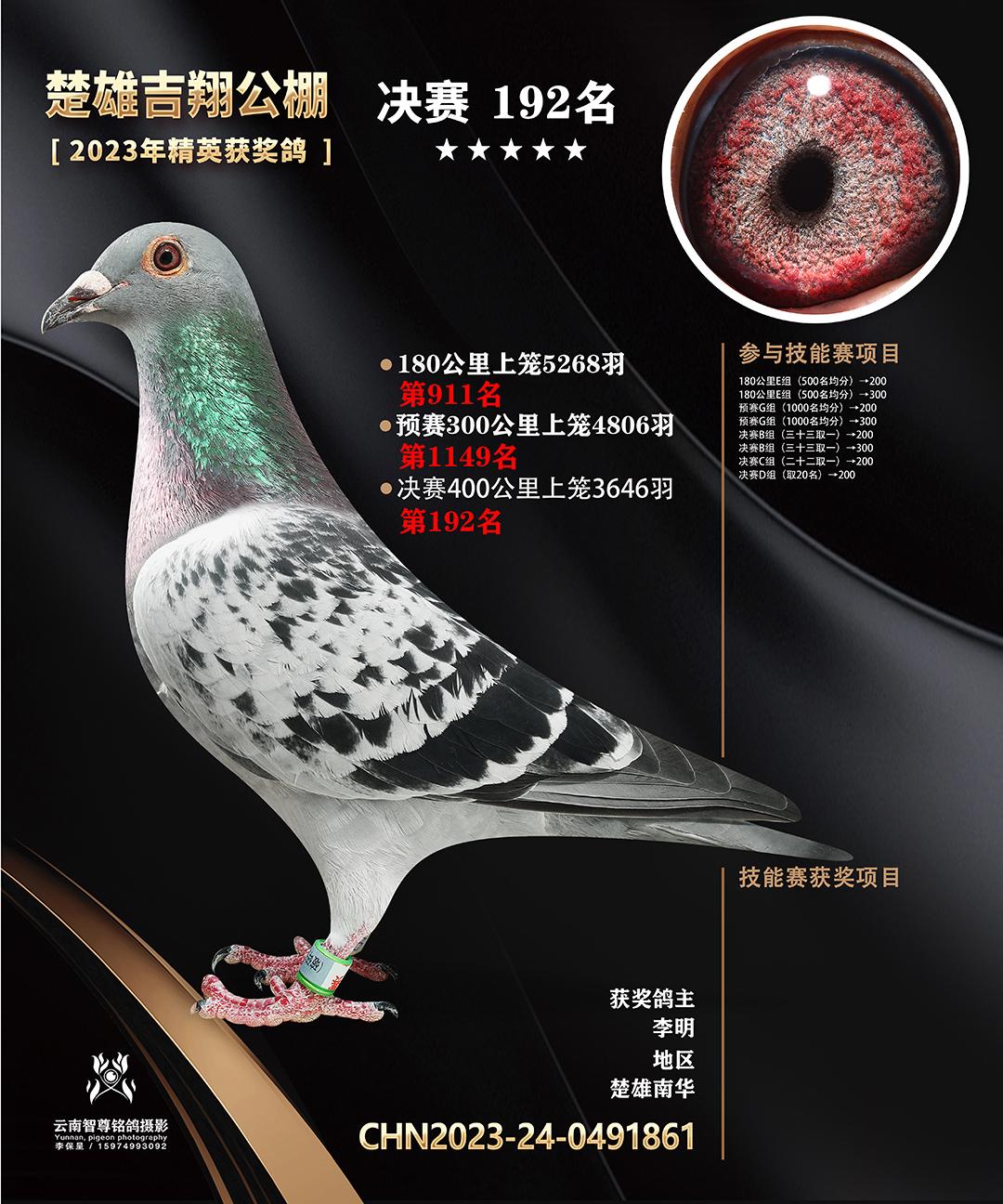 楚雄吉翔养殖有限公司(秋棚)2023年精英获奖鸽