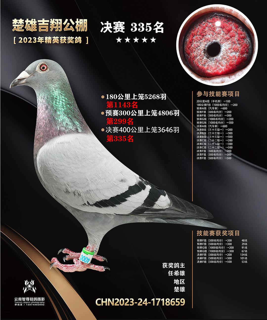 楚雄吉翔养殖有限公司(秋棚)2023年精英获奖鸽