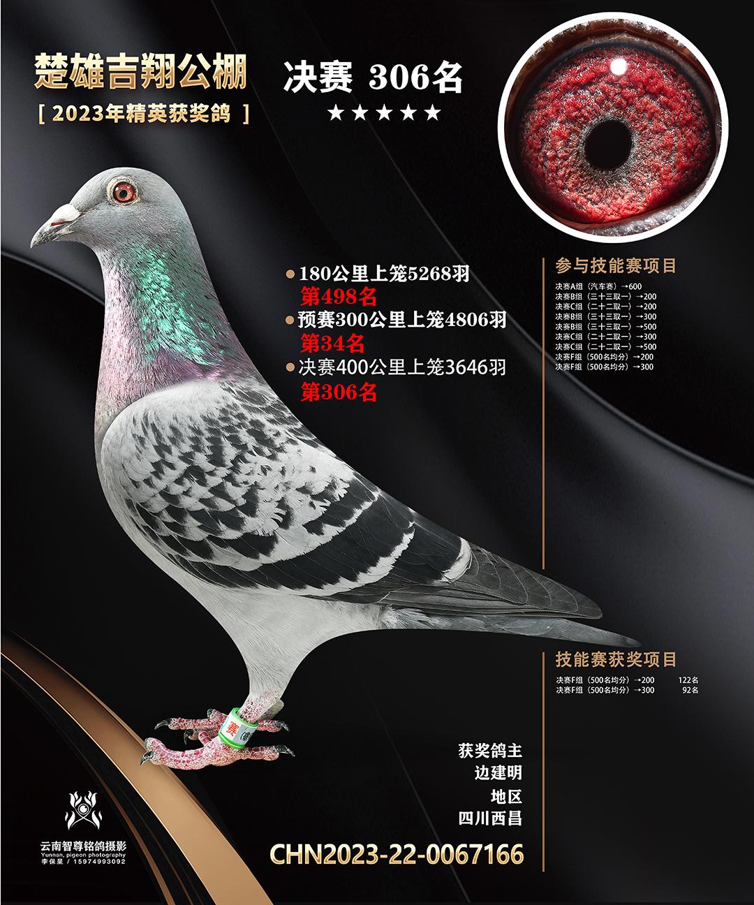 楚雄吉翔养殖有限公司(秋棚)2023年精英获奖鸽