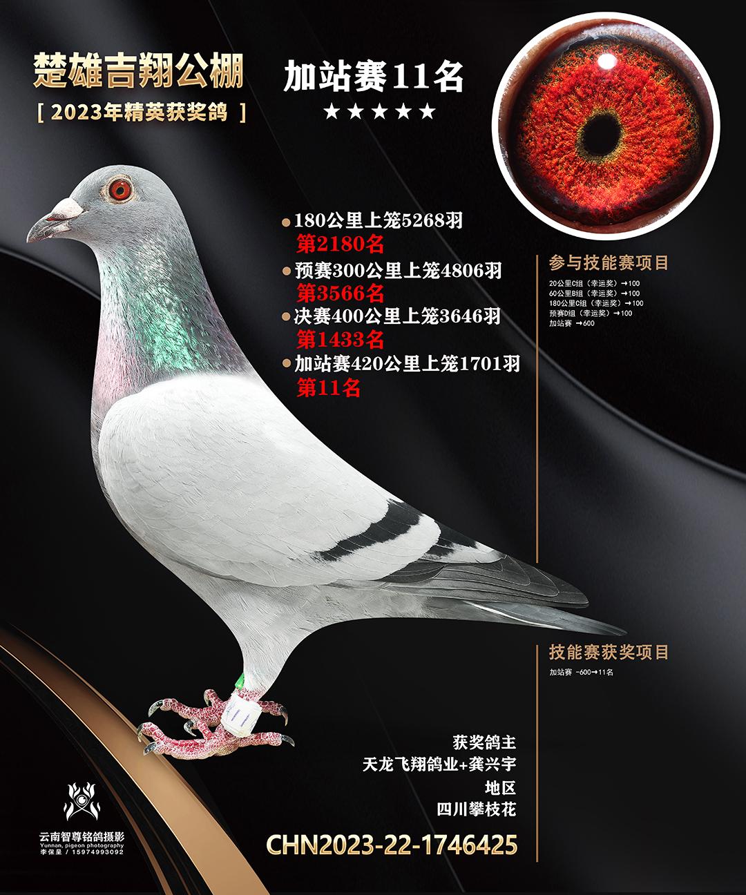楚雄吉翔养殖有限公司(秋棚)2023年精英获奖鸽加站赛