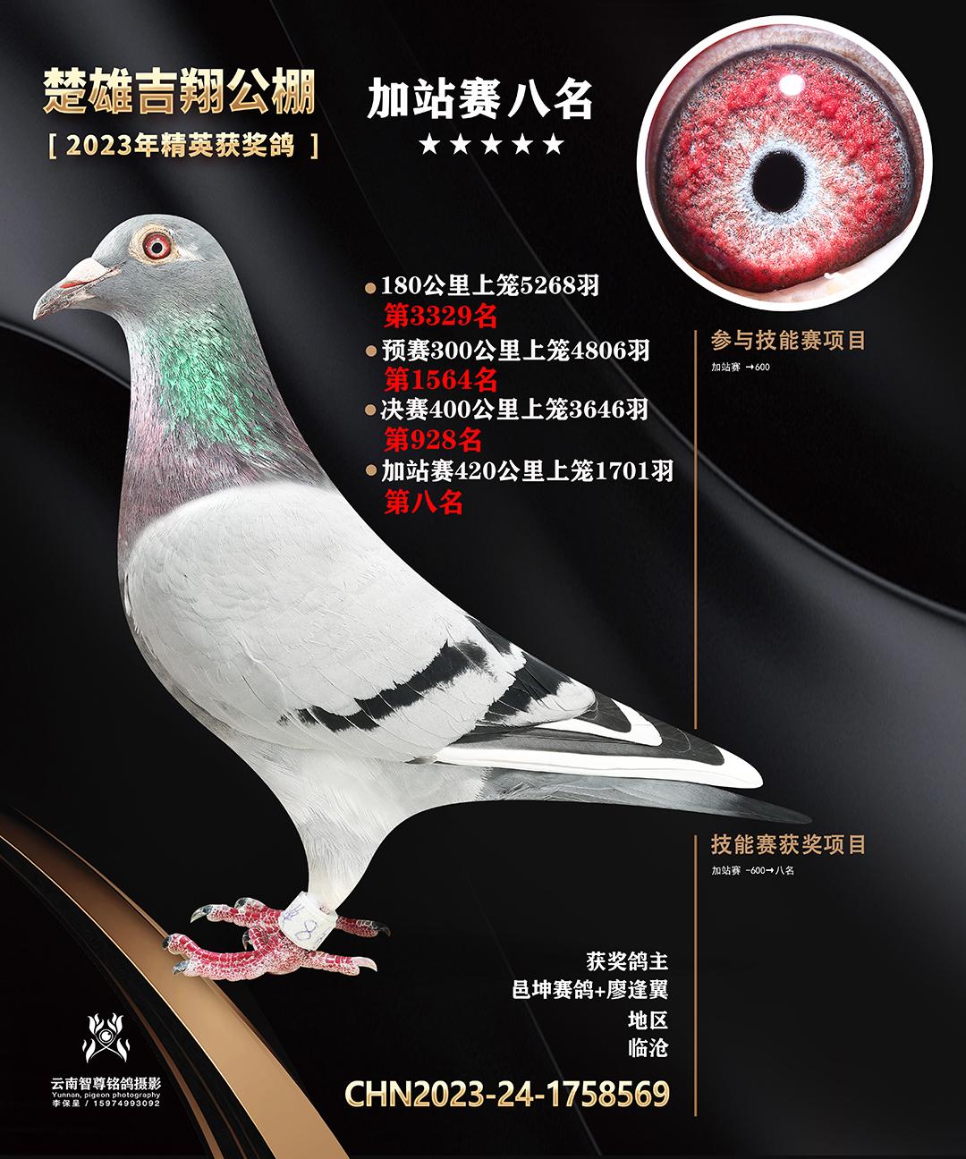 楚雄吉翔养殖有限公司(秋棚)2023年精英获奖鸽加站赛