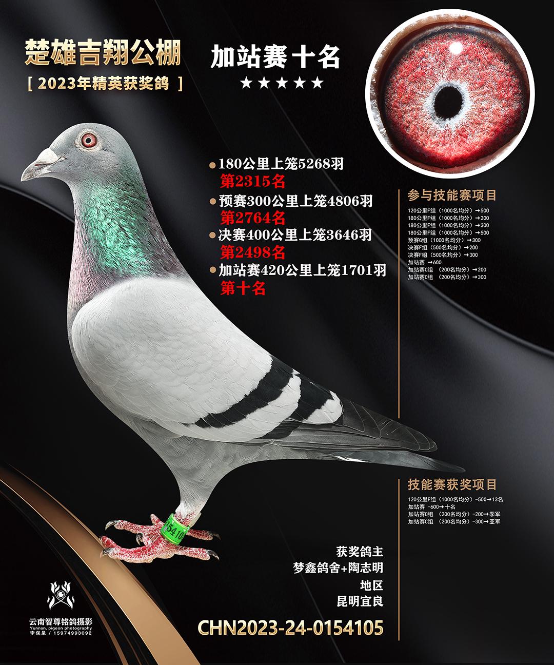 楚雄吉翔养殖有限公司(秋棚)2023年精英获奖鸽加站赛