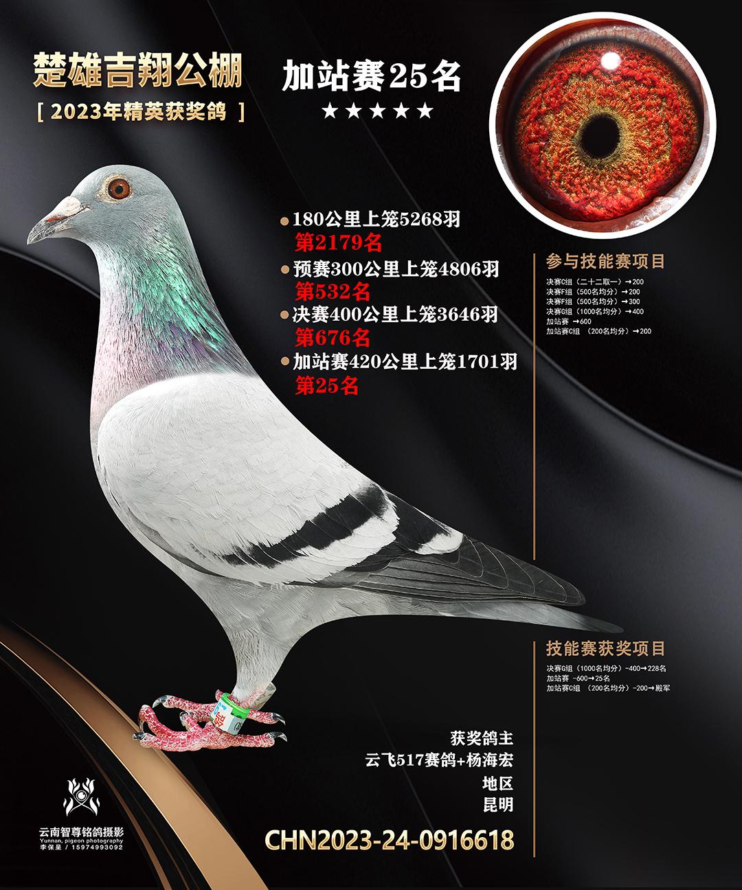 楚雄吉翔养殖有限公司(秋棚)2023年精英获奖鸽加站赛