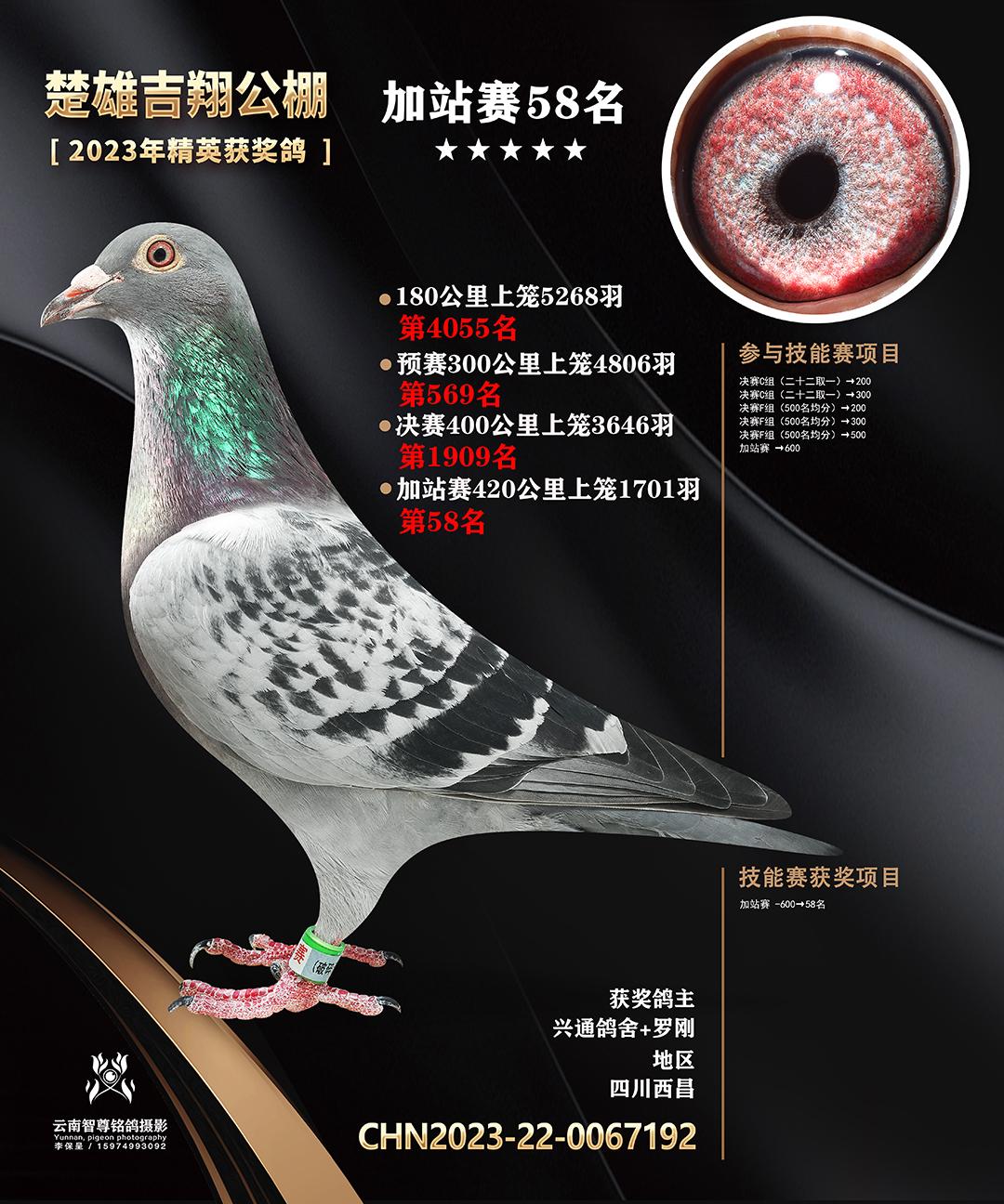 楚雄吉翔养殖有限公司(秋棚)2023年精英获奖鸽加站赛