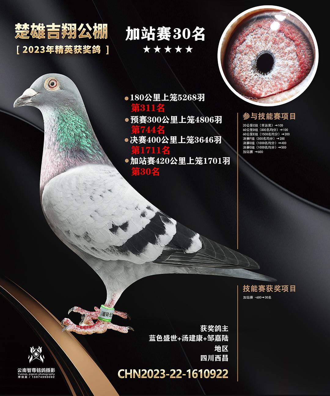 楚雄吉翔养殖有限公司(秋棚)2023年精英获奖鸽加站赛