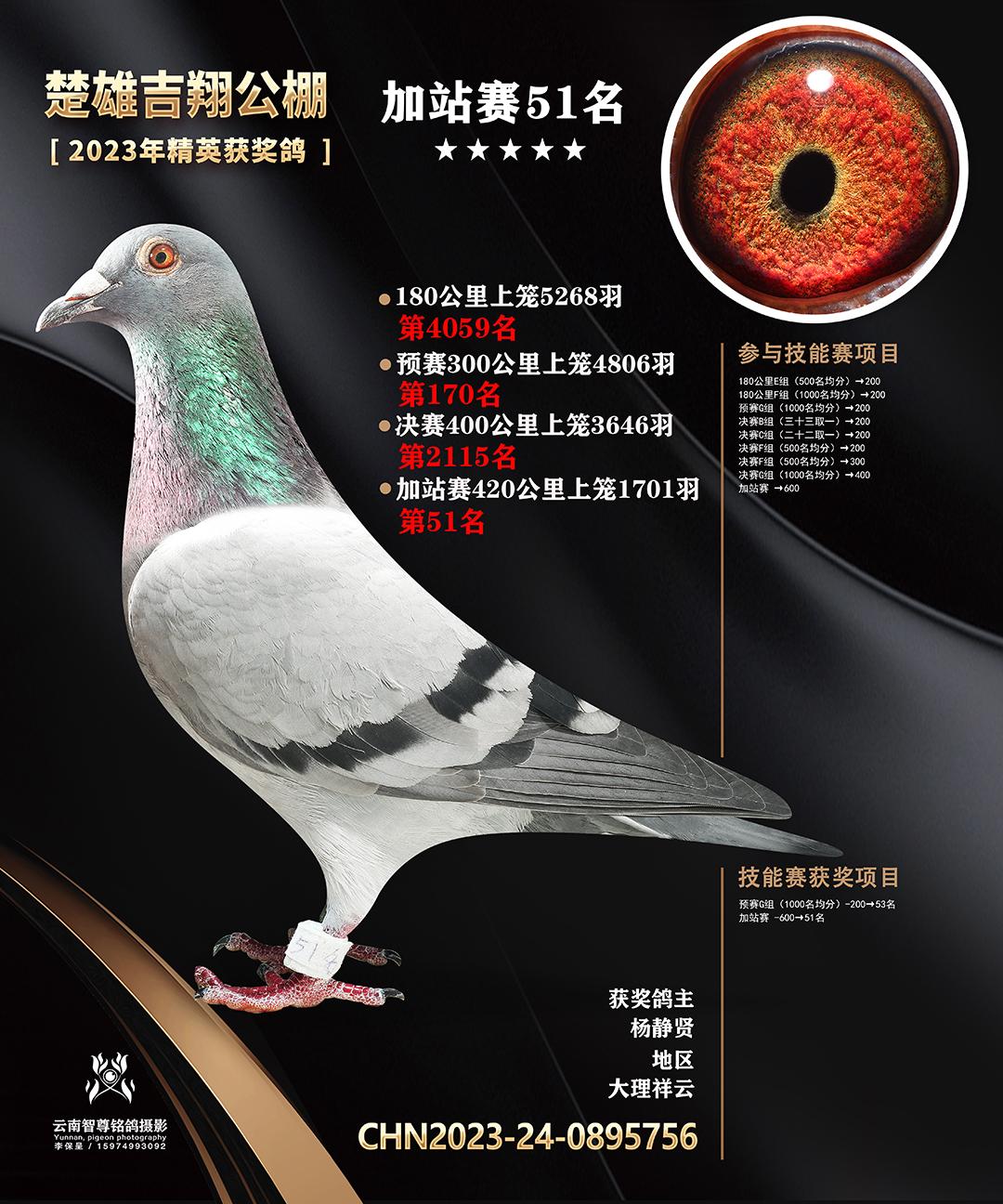 楚雄吉翔养殖有限公司(秋棚)2023年精英获奖鸽加站赛
